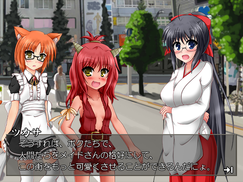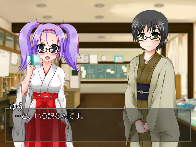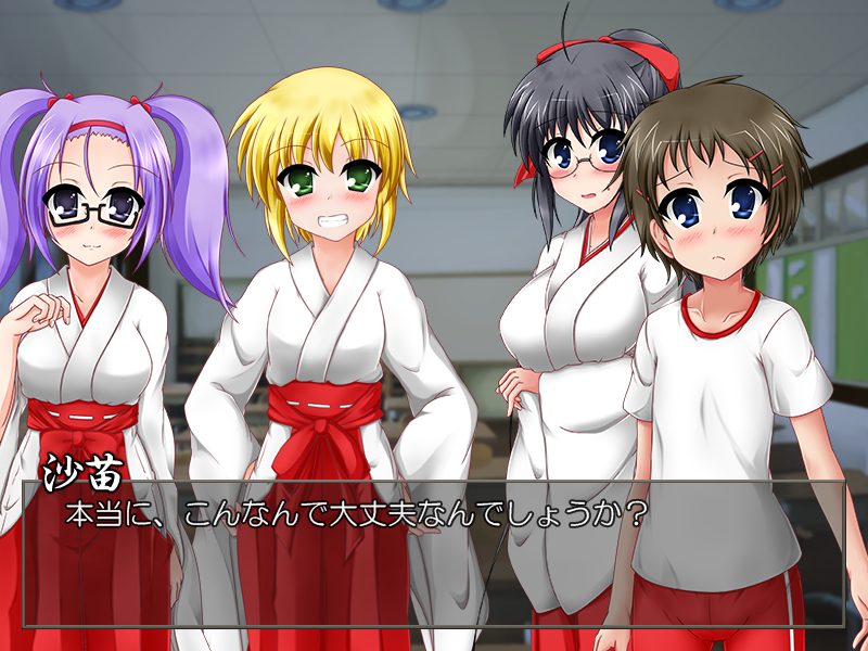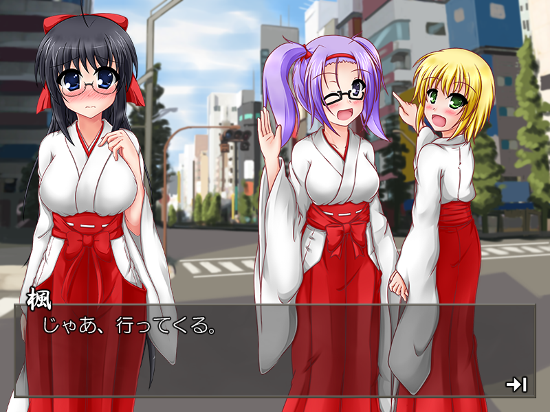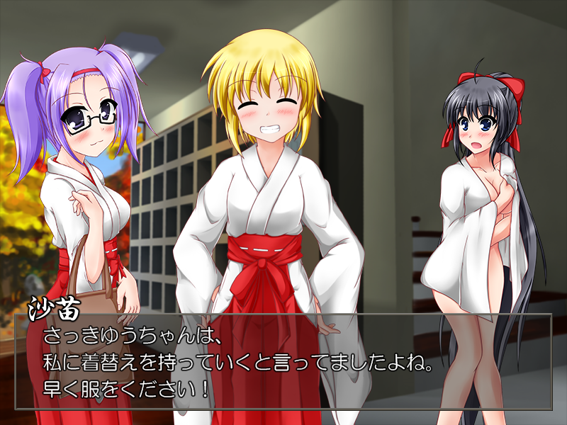 人間と妖怪が存在している世界に、山奥にある巫女学校の藍咲沙苗、山吹楓、そして、三原ゆうがいたずらする妖怪と戦うフルボイスノベルゲーム